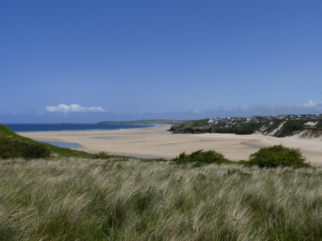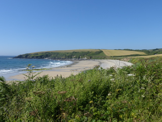 After our walks in Penwith and on the North coast the going seemed almost tame. The path was easy going and largely on the level. The landscape rolled but there were none of the towering cliffs to which we were accustomed. Beaches were extensive and had sand in abundance, interspersed with rocky outcrops.
