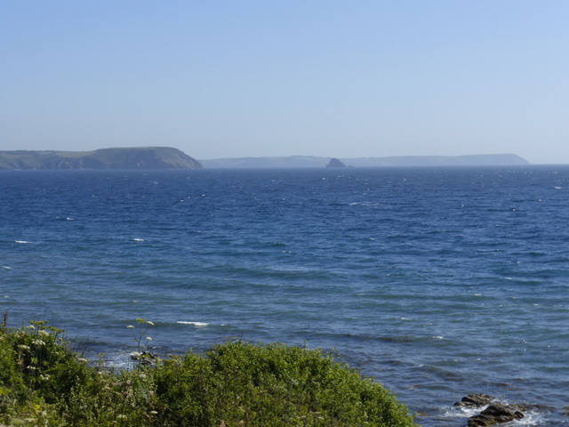 We picked up our previous trail at Porthbeor beach and headed around Porthmellin Head from where we could see our objective for the day: Nare Head and its accompanying pyramidal Gull rock, the Dodman hovering in the background.