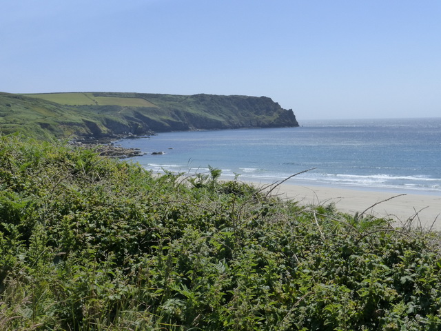 The sandy stretch of Carne beach is glorious and was filled with walkers and dogs. Nare Head looked close enough to touch.