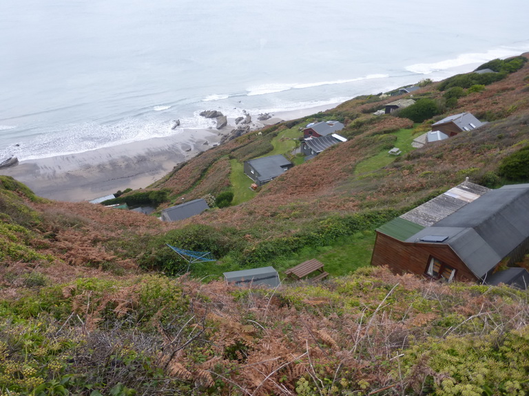 The shack-land continued as we walked along the cliff beyond Freathy, the military road our constant companion, following the contours. The open-air nature of these, with their little patch of green seemed so much more appealing and genuinely ‘green’ than the rows of houses at Looe, Millendreath, or Downderry. It was as though the planners were refusing brick and stone; well done them.