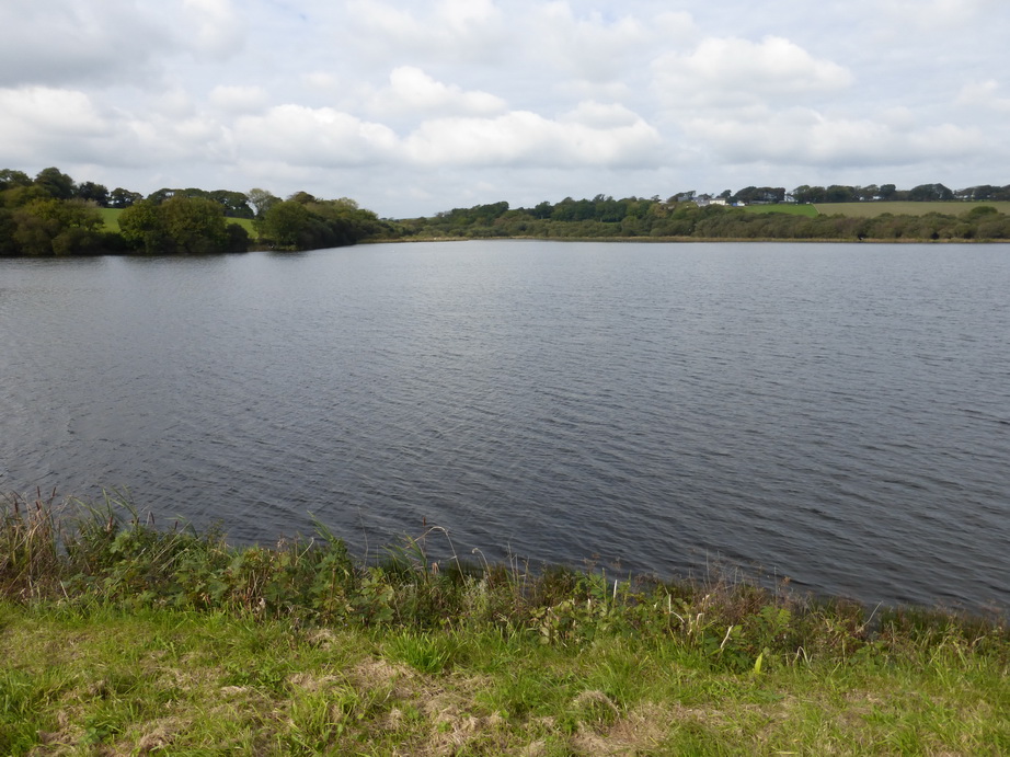 The blackberries were no worse than the day before and we made good progress along lanes to West Leigh where we were to turn left onto the so-called Planekeepers’ Path. Here we hit a snag in the form of deep puddle of slurry completely blocking the track. Some lateral thinking took us through the farmyard of Leigh Farm walking past a ‘Private’ sign unnoticed, and back onto the track across the valley to Cross Lanes.