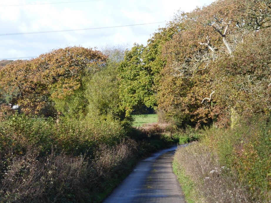 The St Leonard’s water treatment works was as delightful as ever while close by polite children were passing their Sunday mornings exercising their mounts walking around a dressage ring. Hidden away was the tiny packhorse bridge over the river Kensey which we had spotted before, now covered in a spectacular carpet of orange leaves.