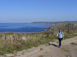 The going was easy with numerous wide tracks, many of them paved with rough stones to reduce the wear and tear. ‘It is strange, there are no signs. I think this is the way,‘ said one passing traveller, heading towards Sennen Cove which was visible at the foot of the cliff directly below her.