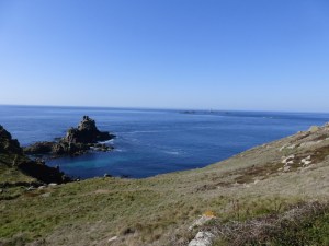 Central to the view are the Longships rocks and lighthouse but utterly forgettable is the mess of buildings around the Land’s End hotel. The Wolf Rock lighthouse was also visible on the horizon but the haze prevented us seeing Scilly.