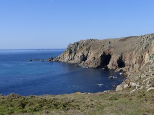 We will admit to any amount of bias but this surely the ‘best’ bit of the whole Cornish coast. The cliffs are rugged granite; the views are spectacular; and there is a real sense of progress as one starts by walking westward, heads south and then ends up walking eastwards. The cliff and rock formations are therefore seen in different lights. On this day, the sea was flat calm and an astonishing array of different colours ranging from deep blue to a watery green.