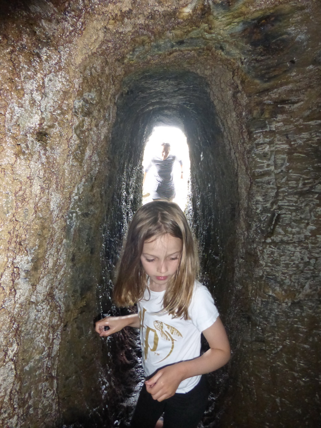 Inside (torch, or phone essential), there is a short, narrow 3-4m tunnel in which an adult can stand which leads into the bath itself.