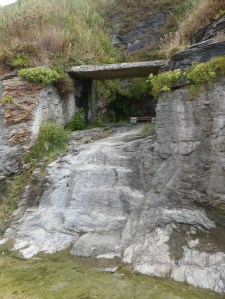 This runs at an angle to the main gully and contains the remains of some footings for wooden beams designed to protect the keel of a boat from the rocks in lieu of a keel-channel (or ‘drift’). A modern version of these beams can be seen round the corner at Bessy’s cove.