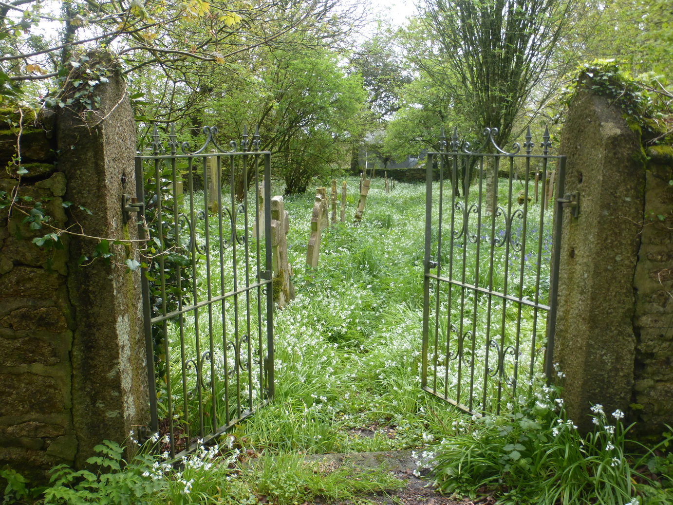 Just beyond, was a lovely walled churchyard with an abundance of bluebells and three-cornered leek bursting through the long grass. It would be hard to think of a more tranquil setting for the C19 residents of Sancreed to have been buried. The leek (‘wild garlic’) would keep away the vampires.