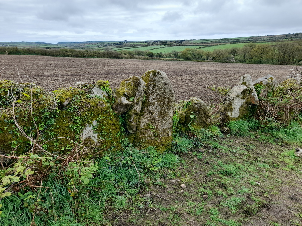 A side path took us on to the holy well where we made our devotions before setting off on a wide sweep across country to Carn Euny. The walling around here reminding one that this was an area that had been inhabited since the Iron Age, and probably earlier. Moving large stones was no problem for our ancestors.