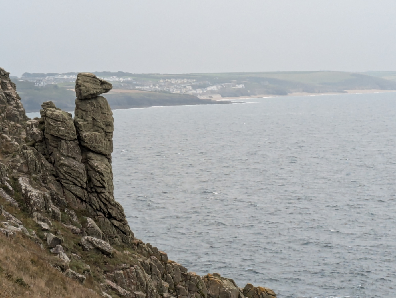 Rinsey Head is a familiar landmark with its house apparently perched on the edge of the cliff. What many people miss is that there is a small cove at the base of the cliff – Porthcew – which has sand at low tide and has several tempting-looking rock pools.