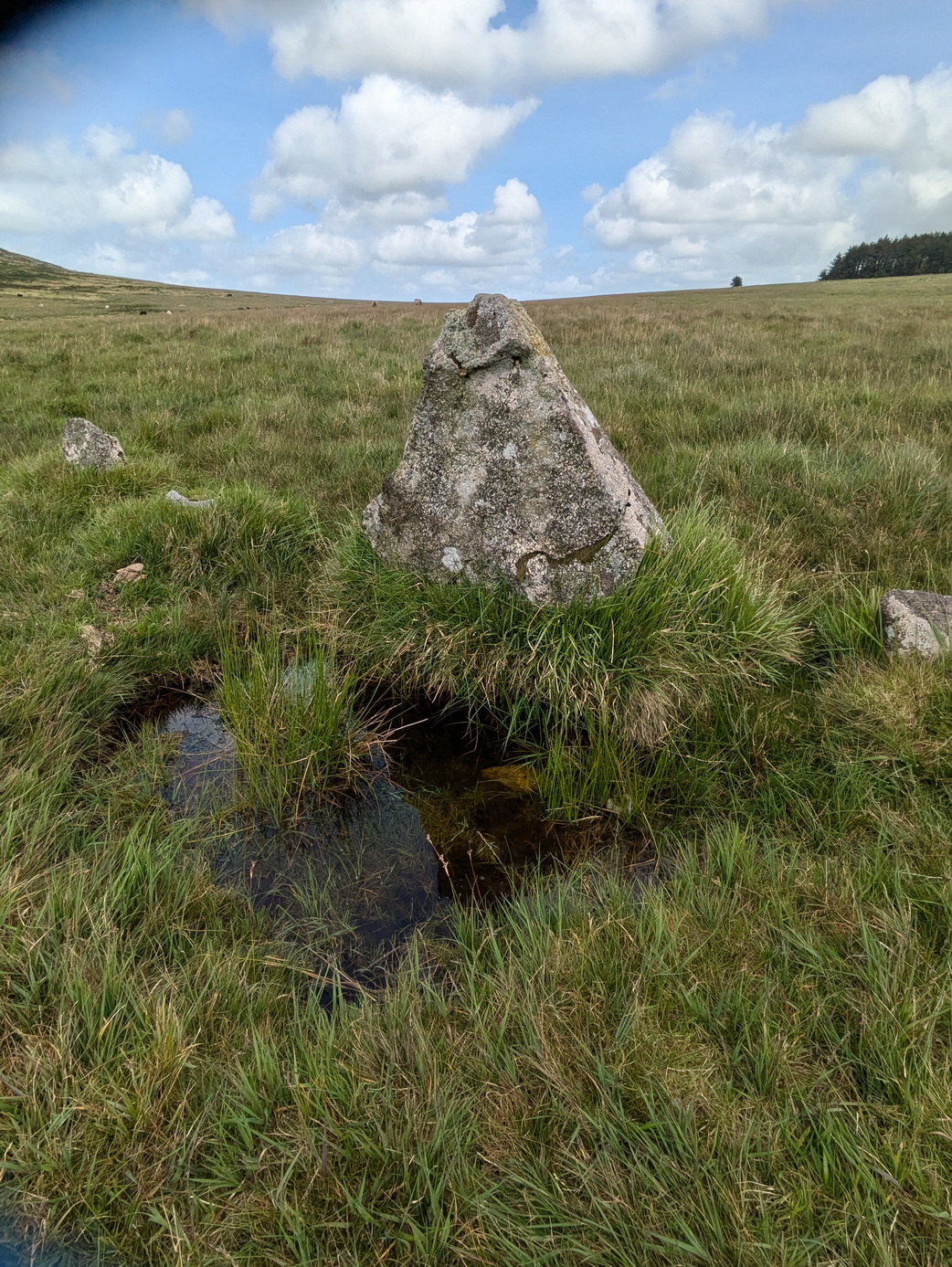The effect of its isolation is rather ruined by the large, obviously man-made hill alongside: the remains of former china clay mining which has resulted in the large Stannon reservoir.