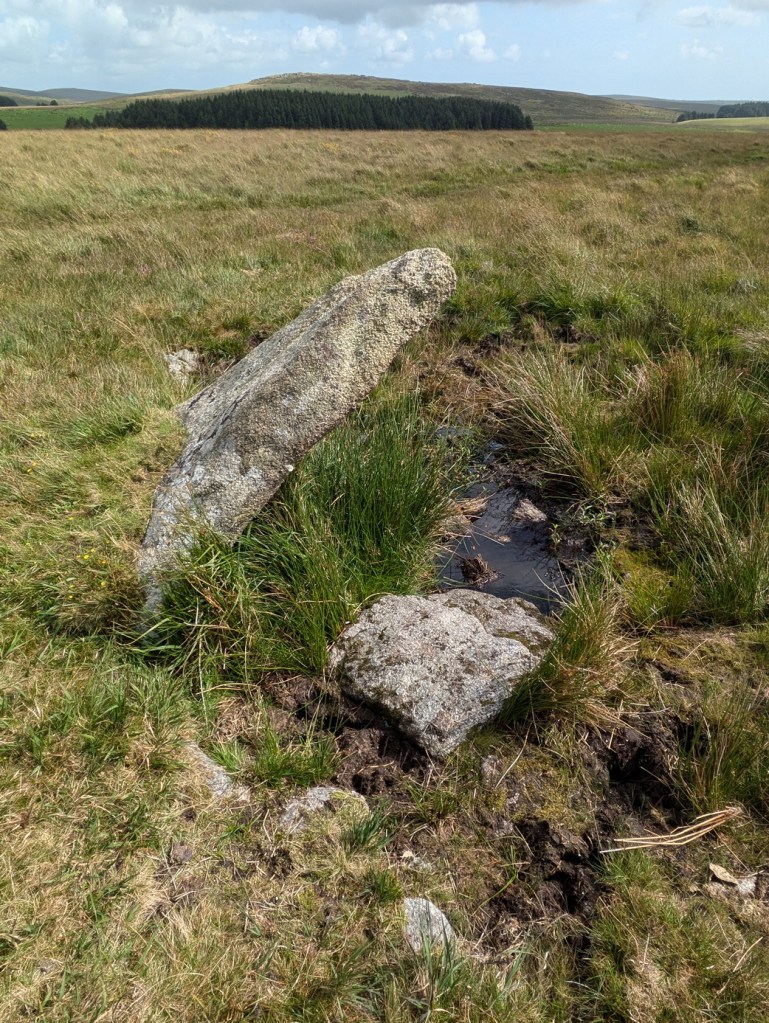 Joining a long rough track which led to a series of isolated farmsteads, we passed by Louden Hill stone circle which was even more invisible than Fernacre. Only discovered in 1973, this is much the size of Fernacre in theory but consists of a dozen or so fallen stones and only one which stands to about 1.5m, leaning at a drunken angle.
