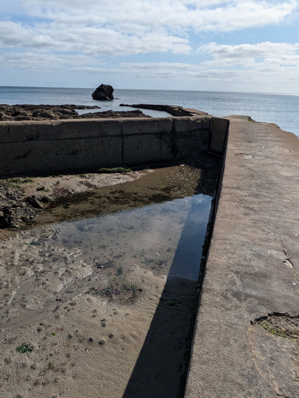 The observant will notice that a large pipe runs at the base of the sea wall and out to its extension, so the wall had a practical purpose. One hopes that the pipe is no longer in use.