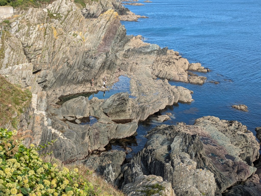 Our last visit was to an absolute gem: the Chapel pool at Polperro. On a sunny day, this was very high up our chart of rock pools: deep, retaining water at low tide, relatively easy access, clear water …