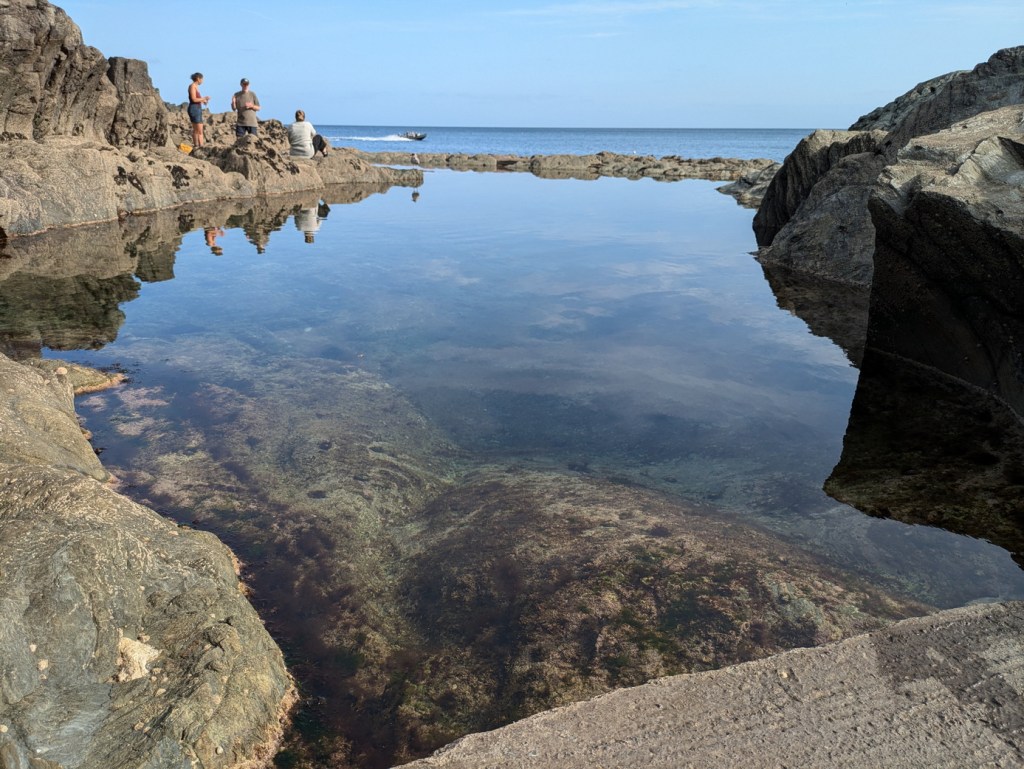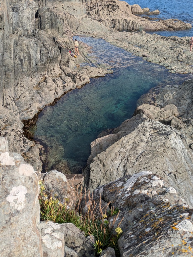 The pool itself is several metres long and wide, providing a depth of water that would allow diving (with care), and a lovely sense of being an infinity pool. The water was crystal clear with no sign of kelp fronds or other nasties to hassle the swimmer.