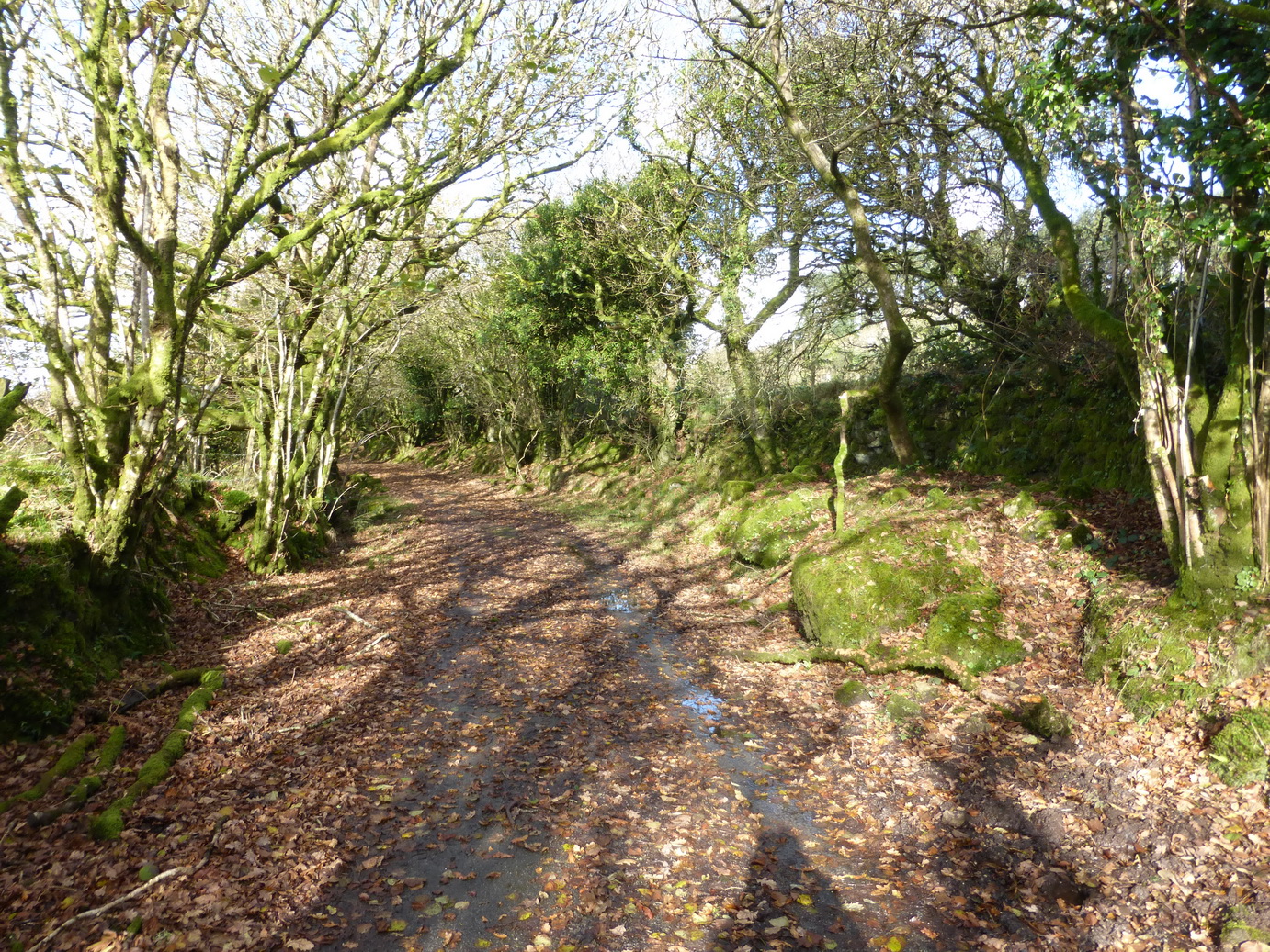 We drank a welcome cup of coffee at the foot of the tor before crossing Warleggan down and descending a road to to Treveddoe, a beautifully-situated house at the head of a wooded valley.