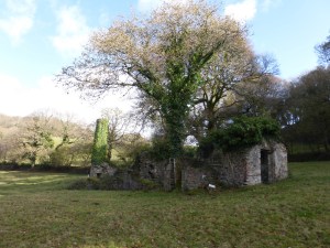 Crossing the unusually tidy greens at Little Downs, we headed towards the remains of Cardinham castle. Sadly, there is very little to be seen from the road. The route squeezes down a muddy track – a narrow ‘bridle path’ – past the old mill before rising up towards the village of Cardinham, the church tower very visible on the hill ahead. This must have been the main route from castle to church.