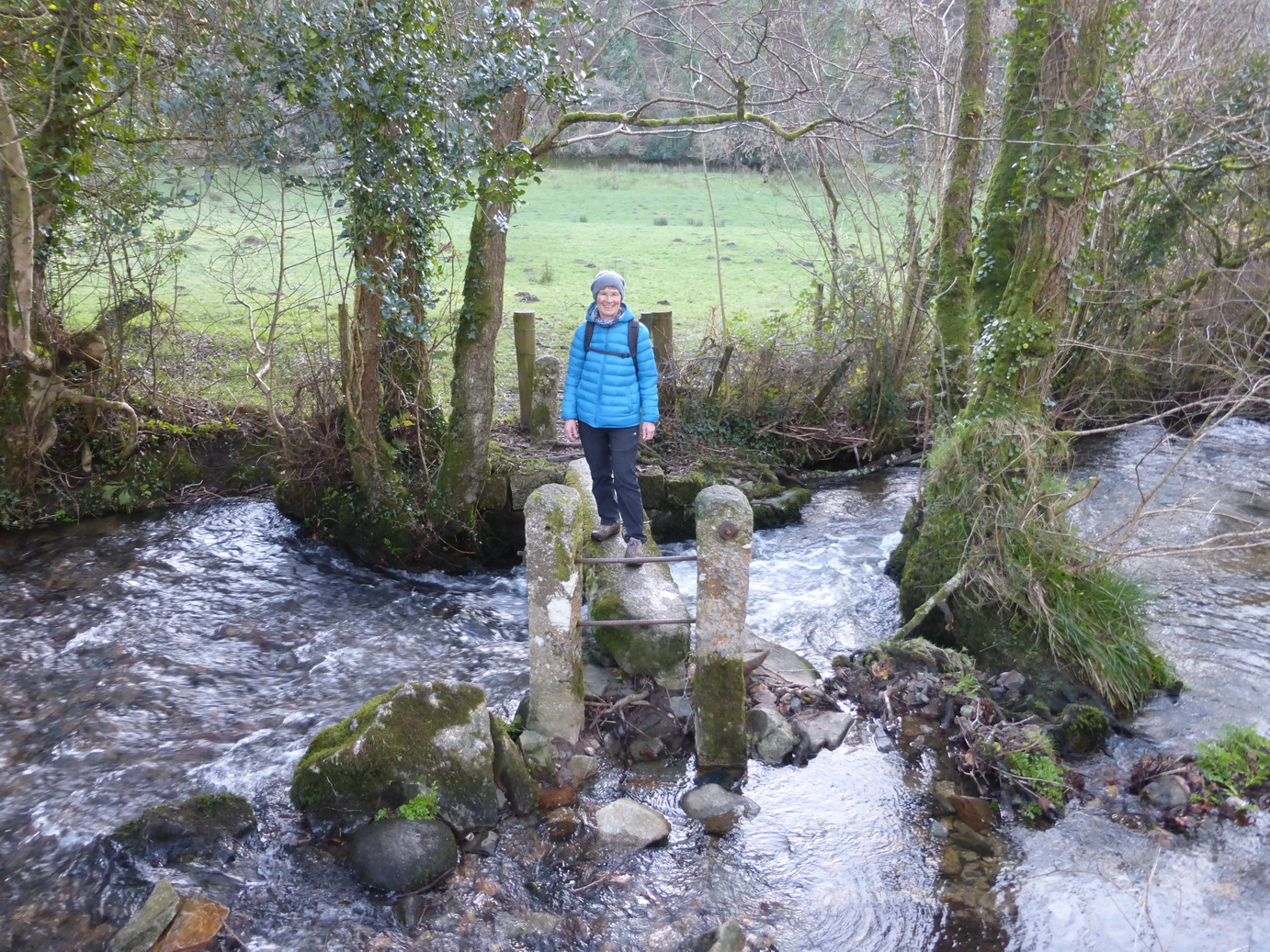 From a road junction at Tresarrett a short uphill section led to some more muddy tracks which dropped down into another valley, across a narrow granite bridge, and up a steep slope emerging right beside the lovely Blisland church. Here we settled down to a lunch which included some warming and welcome soup.