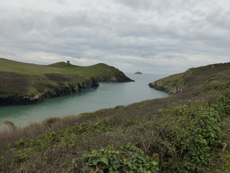 A brief detour to Dinas Head was essential and we noted the Coastguard pole, set here no doubt, for training in breeches buoys and similar rescues, the pole standing in for the truncated mast of a ship.