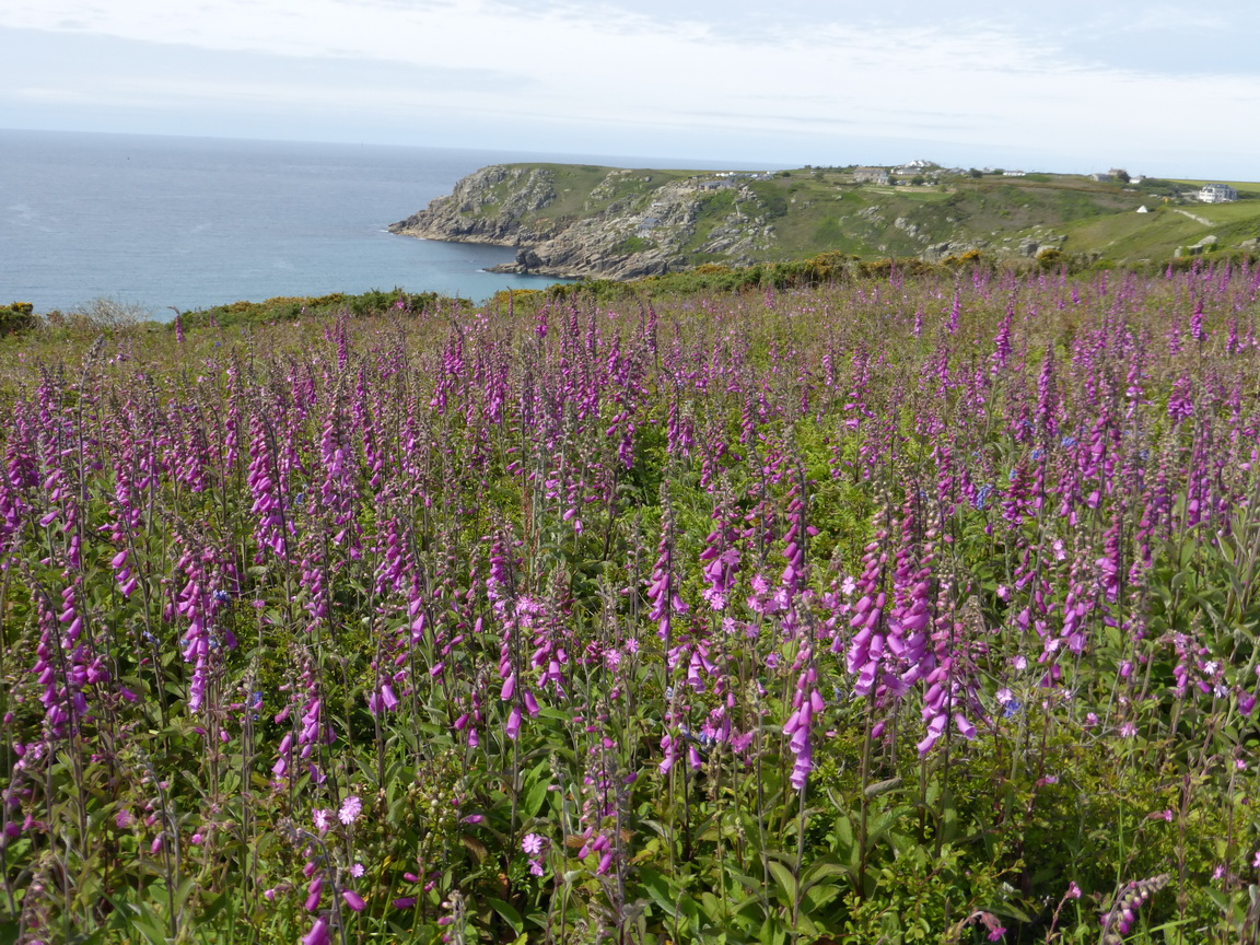 Walking on the cliff tops was easy and a sheer delight for the range of flowers. The bluebells were well past their best but the vegetation was turning to pinks and red. Thrift was joined by white, pink and blood-red campion. The foxgloves were in full flower and in places the dodder covered the top of the gorse like mat of red spiders’ webs.