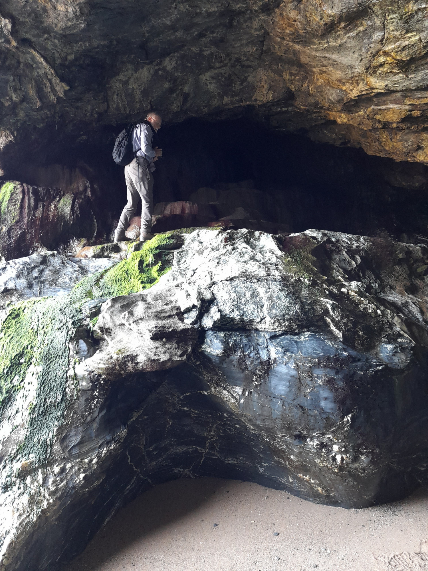 There are two St Cubert’s or St Cuthbert’s wells in Cubert parish. One of them is one of Cornwall’s most unusual holy wells for it is situated in a cave at the eastern end of the great expanse of Holywell Bay beach.