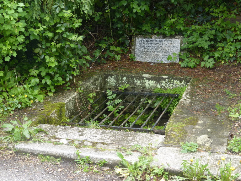 This is not the most impressive of holy wells. Situated very close to the road and within reach of a small stream, it has something of the air of municipal drain. Its panel is illegible.