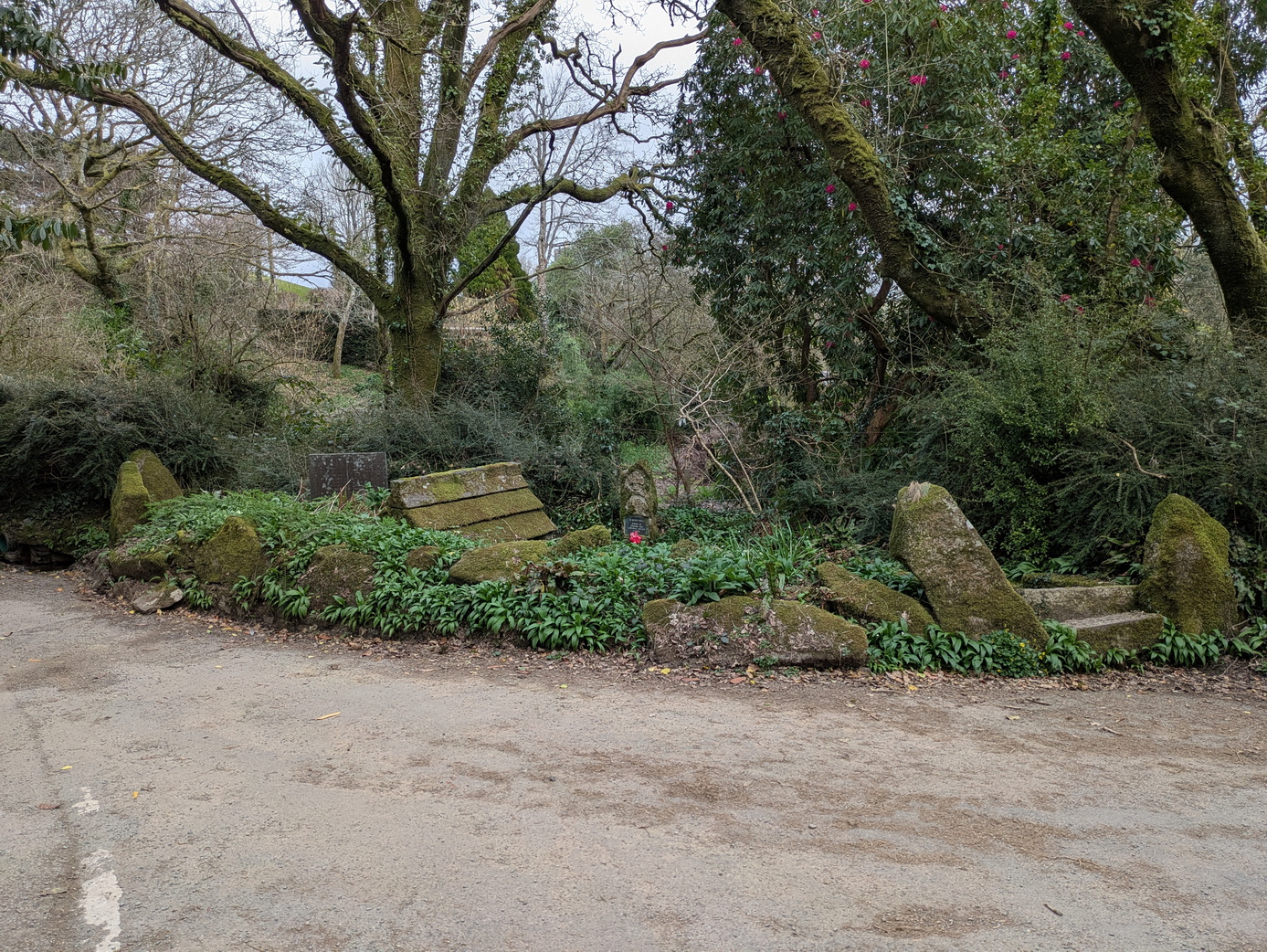 About half a mile south of St Keyne church lies her holy well which plays an important role in marriages. A large slate recites the history: