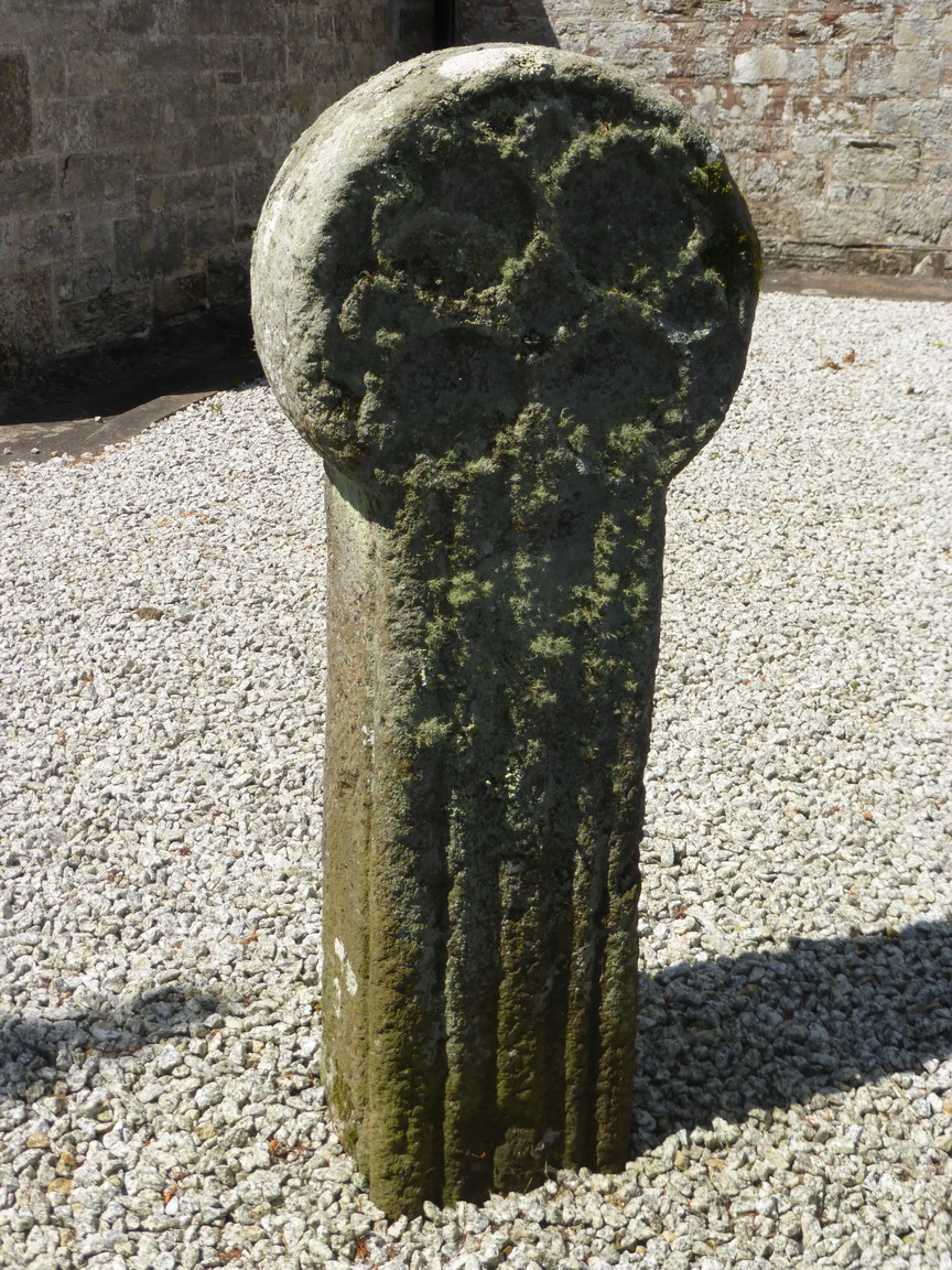 This cross stands just outside the door to Feock church. It is unusual in that it bears an image of the crucified Christ – down to the knees – on one side and a foliated cross on the reverse.