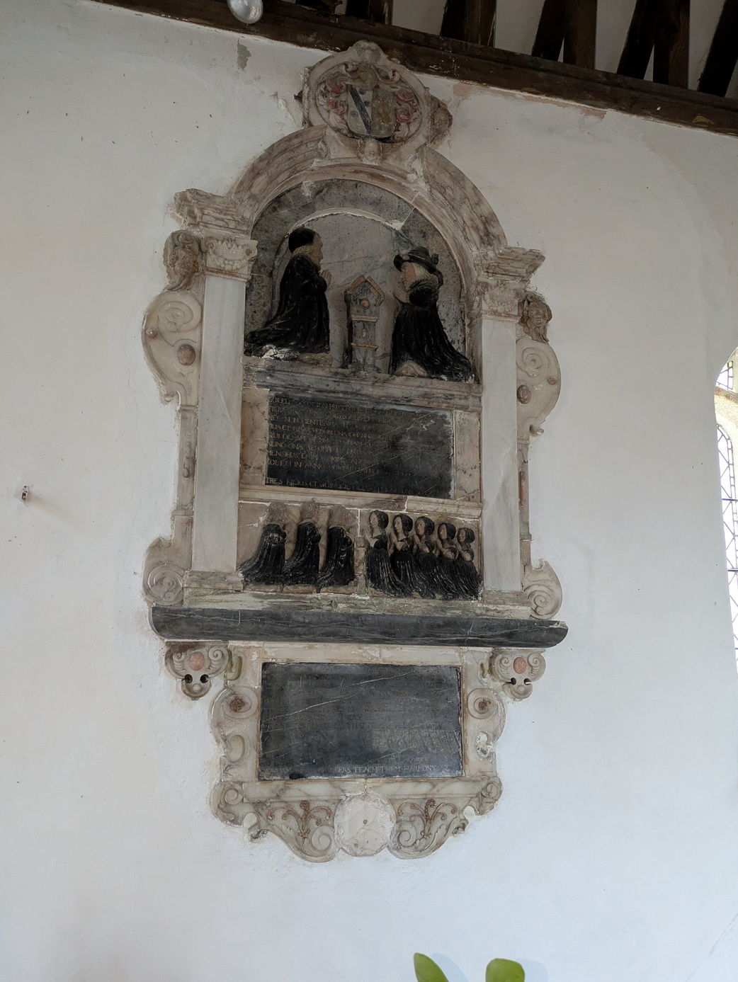 There is a variety of interesting monuments from various dates, the most touching being a small brass, set on a wall, to Hender Robarts who died before his first birthday.
