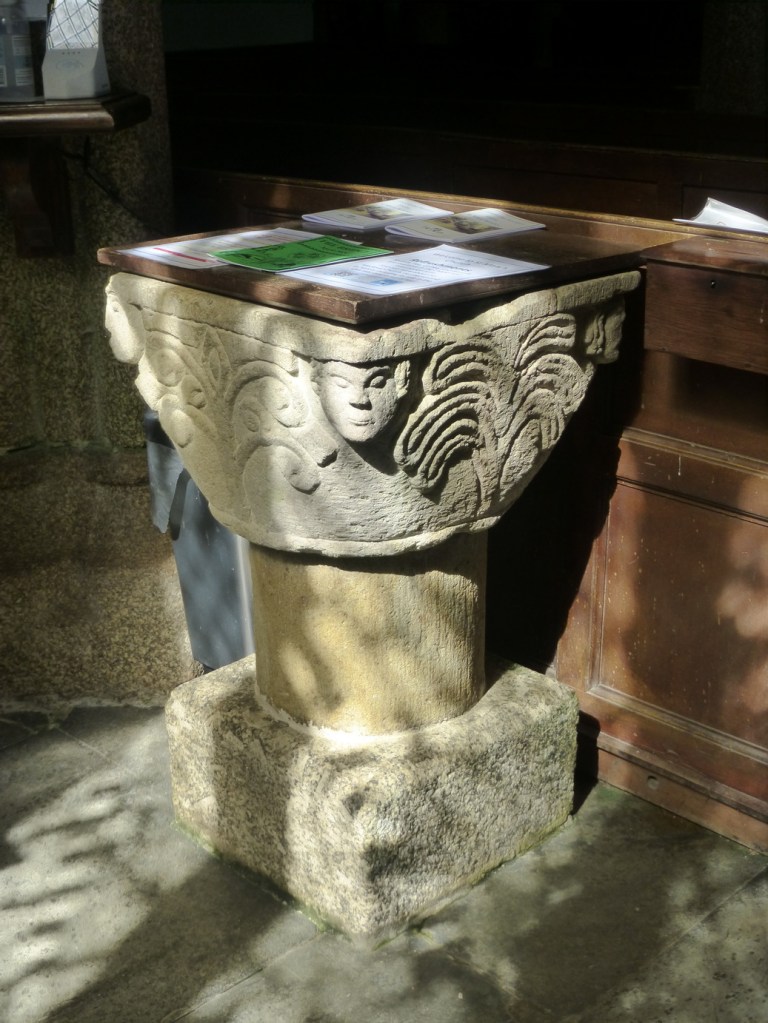 The lovely Norman font has echoes of an Altarnun font with faces at each corner, but here the font feels lighter and has wonderful tree of life style decorations on each face.