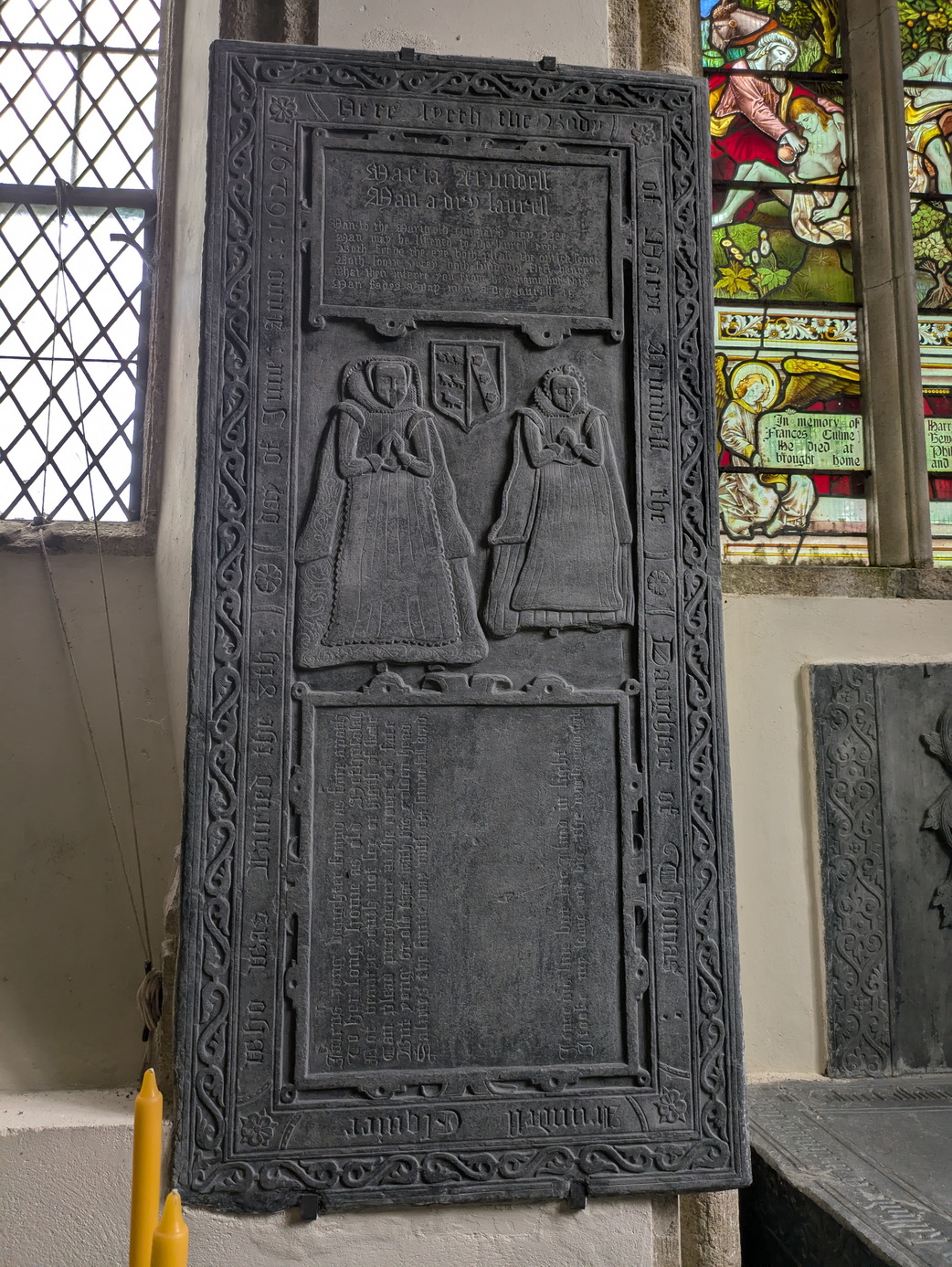 Beside him is a fine array of slate monuments, notably that to Ann Smith d1592.