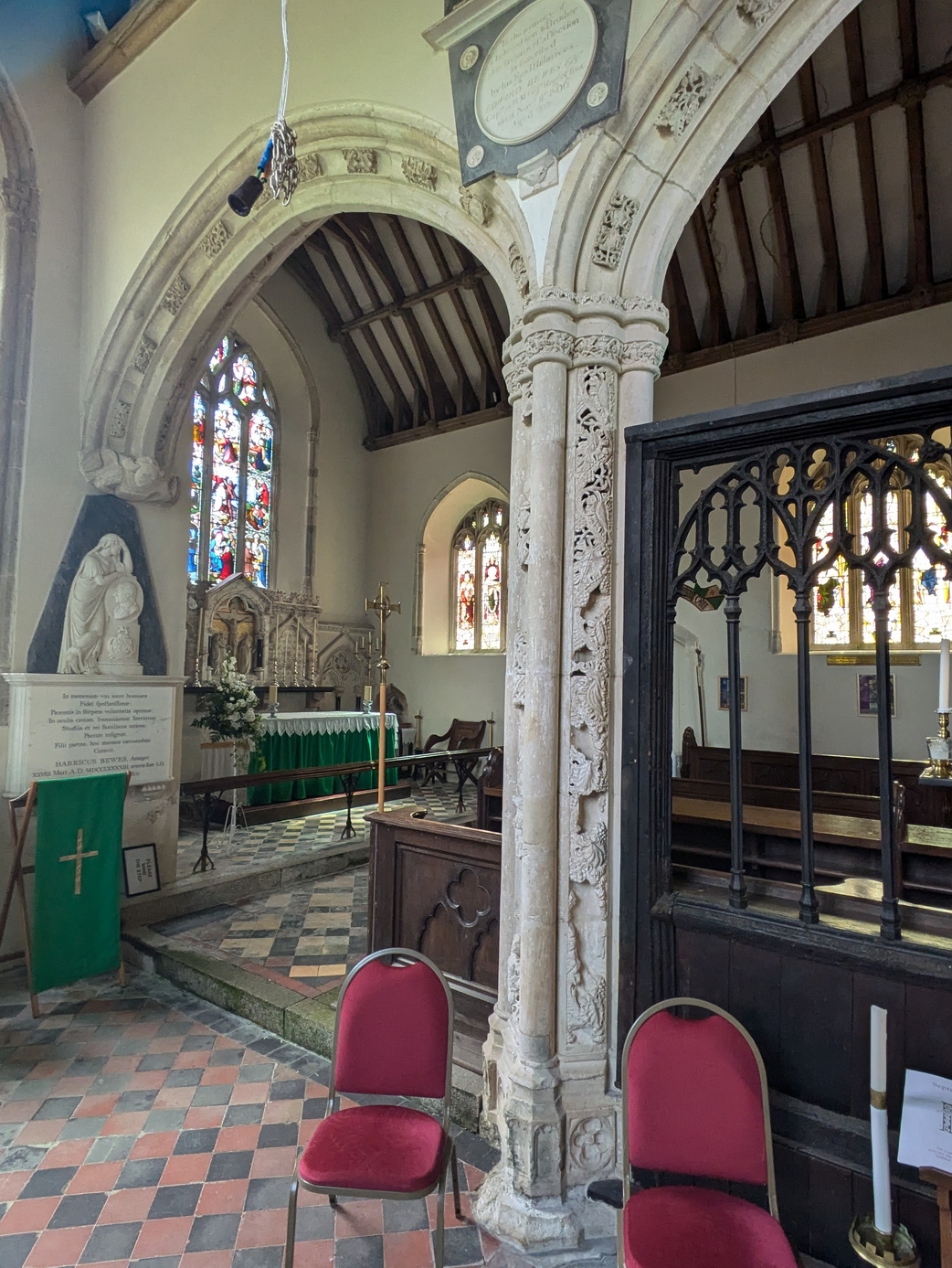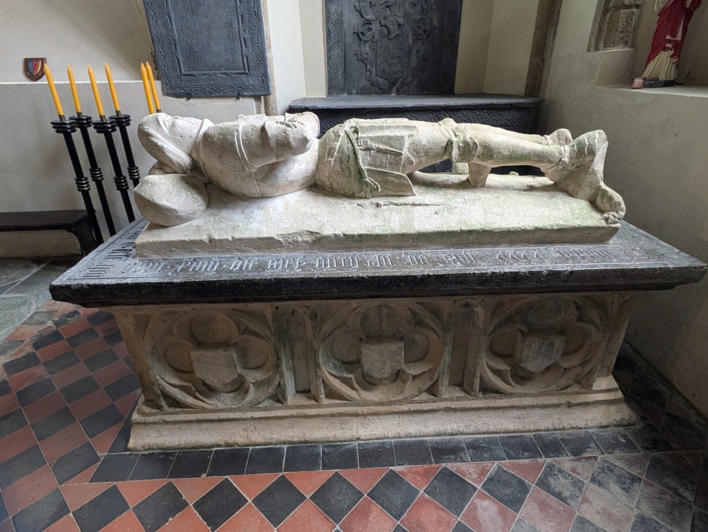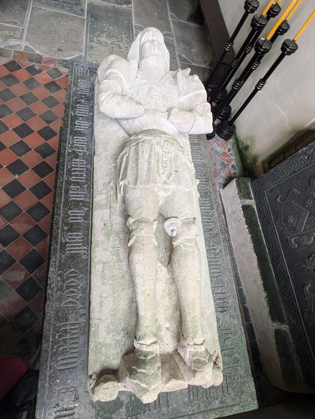 The tomb has been moved but it still dominates the space with Sir John in his fine armour and with a distinctly receding hairline.