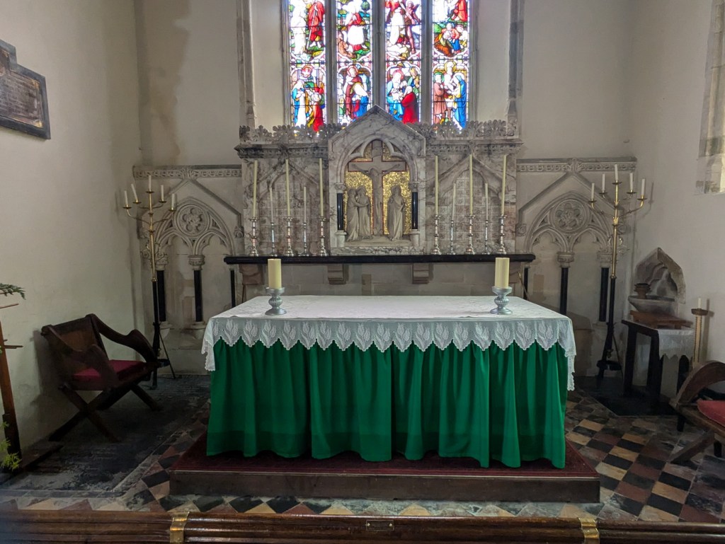 The sanctuary and choir stalls – from Balliol College, Oxford – hint at the C19 restoration by JP St Aubyn and various rectors with connections to that college.