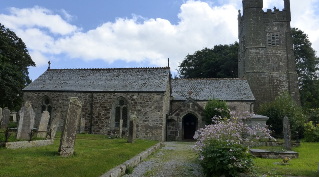 There are a series of crosses in the churchyard. The best is the C10 Polmenor cross which is by the path to the porch. This bears a faint figure of Christ and was obviously used as a gatepost at some point for it has two large holes in it.