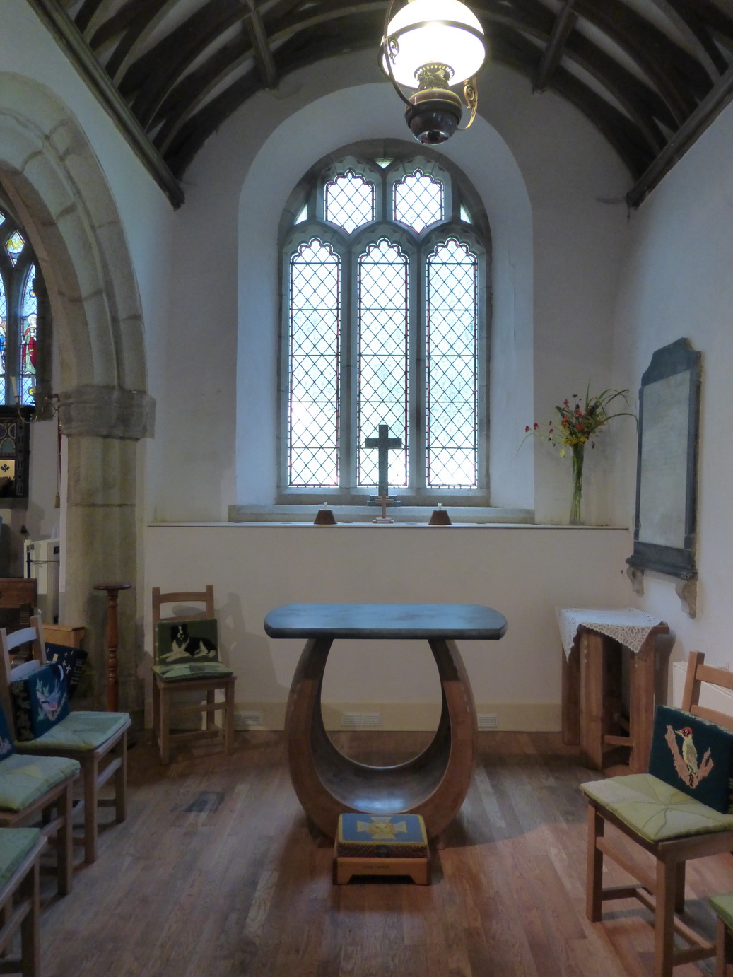The best feature is the beautifully simple altar in the south aisle which is dedicated to a former vicar. Without the ‘benefit’ of Victorian glass, this chapel is light and has none of the high altar’s pretensions. The shape of the altar hints at a variety of things such as cupped hands or a boat. We just wanted to put a small child in its embrace.