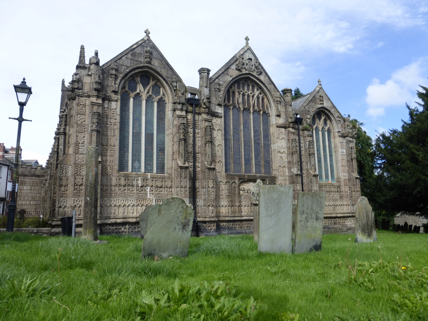 St Mary’s is one of the two churches in Cornwall – along with St Neot awarded four stars by Simon Jenkins. We do not disagree with his assessment which repeats Nicholas Pevsner’s description of the external ornamentation as a ‘barbarous profusion’. The granite walls are covered in carving which must have been an incredible task as the stone is notoriously difficult to work.