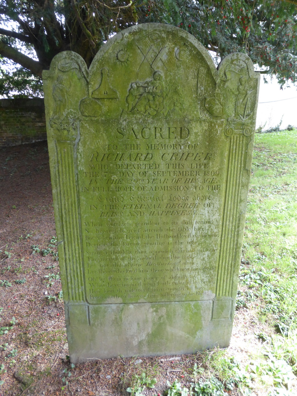 Nearby, is a small lantern cross on a modern base and a headstone to a former mason which plumbs the usual depths of ‘Vicar’s verse’: