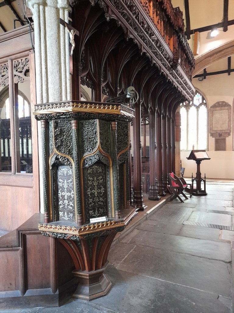 St Mary’s greatest asset is perhaps the C15/C16 pulpit which was covered up during the Commonwealth and only later uncovered to reveal its fine decoration. Understated, with some fine carving it has an elegance that the Victorians rarely captured.