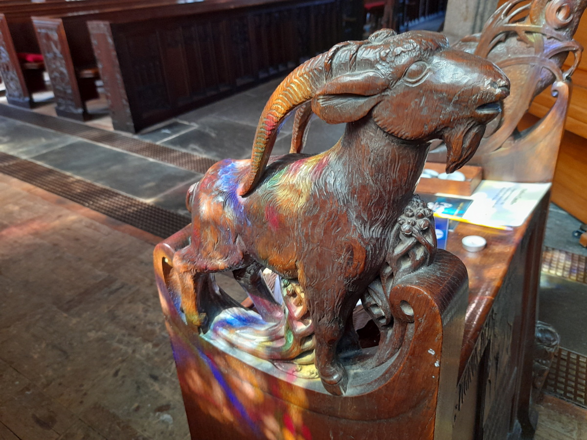 The reredos is relatively modern and apparently divides opinion but we liked it immensely and found it more striking than the usual late-Victorian carvings that adorn the east end of other churches.