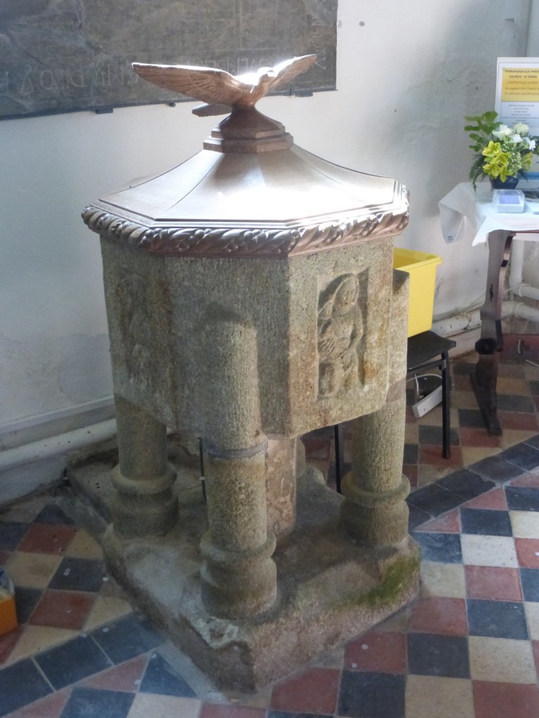 It was actually built in 1804 re-using stones taken from a church that once stood in the sands near St Piran’s Oratory, notably the tower and the arcades. The exterior is in a softer sedimentary stone than the tower which doe snot help the two to harmonise. effectively and there is something slightly incoherent about the ensemble.