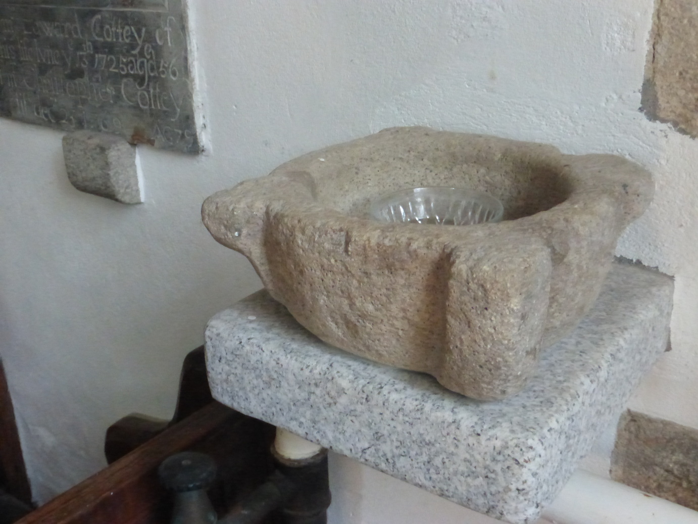 In the churchyard outside is the remnant of a small Latin cross, also brought from the previous church.