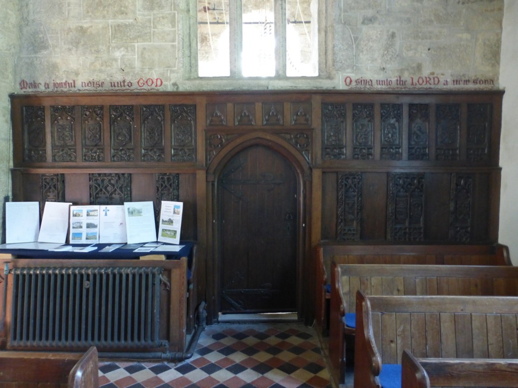 A little stoup by the door is another relic of the previous church, as are some bench-ends which have been effectively re-used to create a screen to the tower lobby at the west end. The carving is not exceptional but has some nice details.