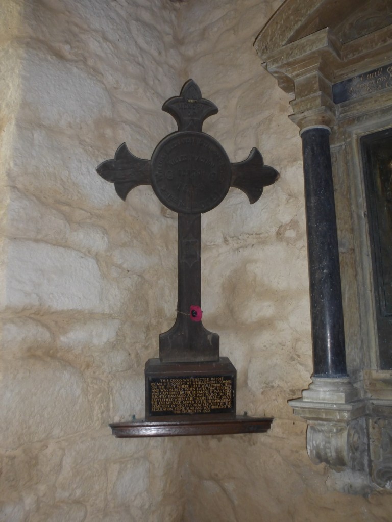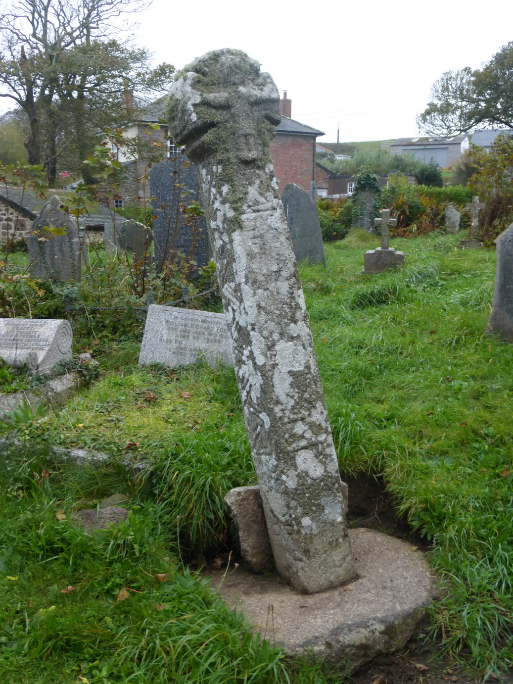 Outside, in the churchyard, there are two very important’ wheel-headed crosses. One bears a figure and is inscribed ‘Runho’, the other has a Christ crucified. We spotted at least one more and the fragment of a fourth on the gatepost.