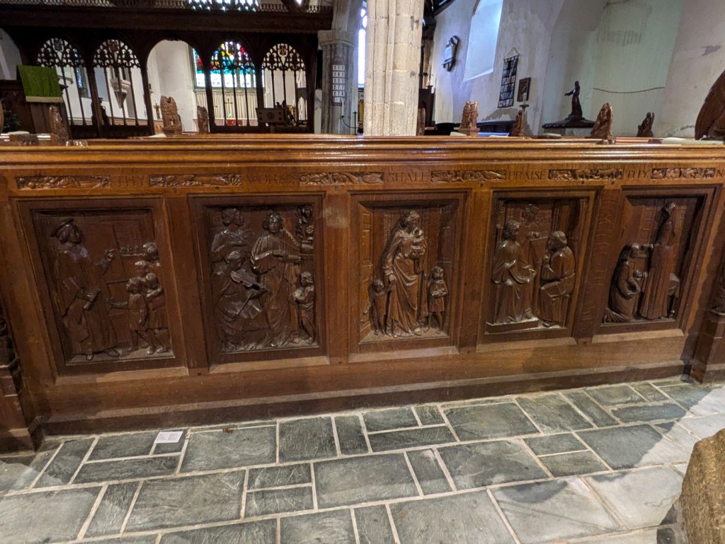 Very striking as you enter by the north door, is the war carved wooden memorial, one of several pieces of carved wood in the church. On the west side, there is an image of a fallen soldier ‘The Supreme Sacrifice’ while on the east there is a list of the fallen.