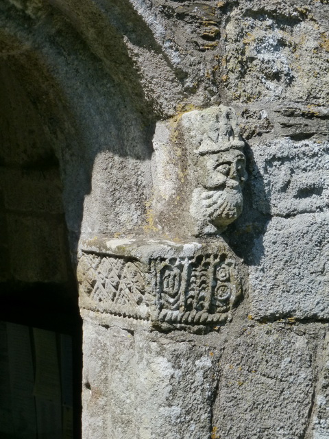 Tregony: porch carving of a king